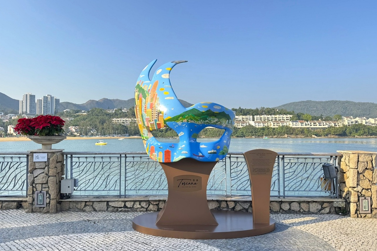 The four masks, themed “Seaside Living”, “Green Living”, “Esteemed Living”, and “Happy Living”, are displayed at DB North Plaza, next to the Pavilion, Auberge Discovery Bay Hong Kong, seaside al fresco dining hotspot D’Deck, and DB Plaza. The exhibition will run until 25 January 2026, with more Italian cultural and artistic events to follow.