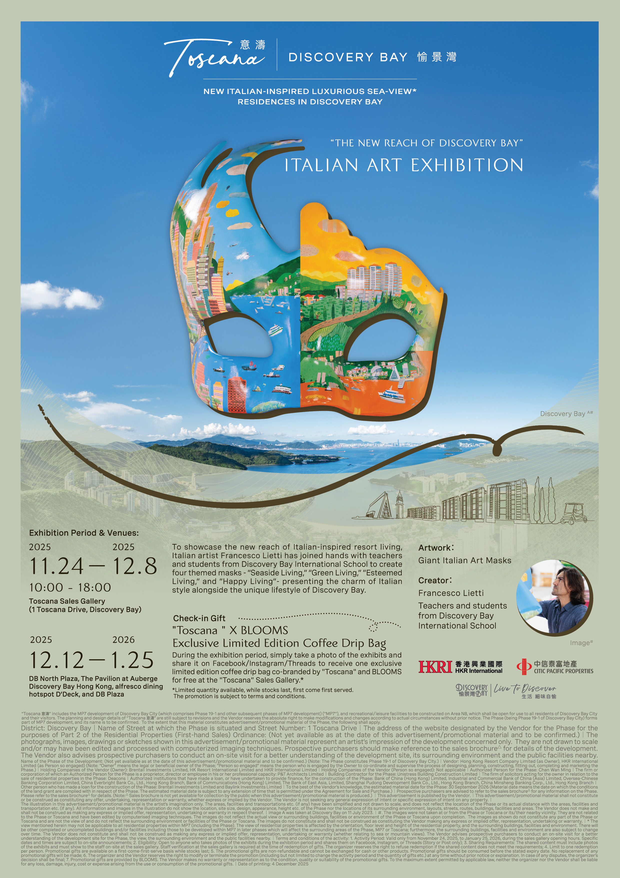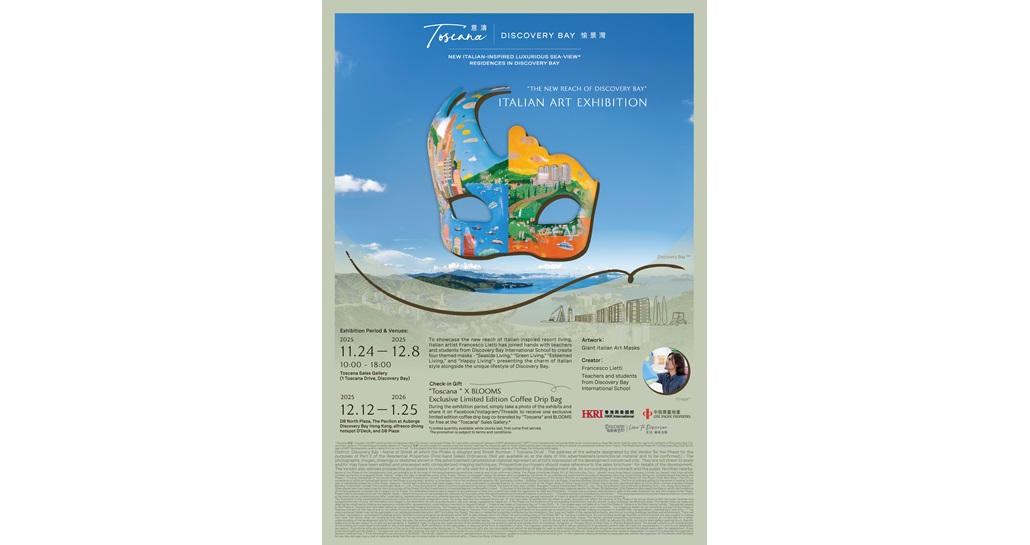 To showcase the new reach of Italian resort living embodied by “Toscana”, Italian artist Mr. Francesco Lietti and students and teachers from Discovery Bay International School collaborated to create “The New Reach of Discovery Bay” Italian Art Exhibition, presenting a series of large-scale Italian-themed masks reflecting Italian culture and lifestyle of Discovery Bay. This marks the opening of the Italian Arts Festival themed around “Toscana”.