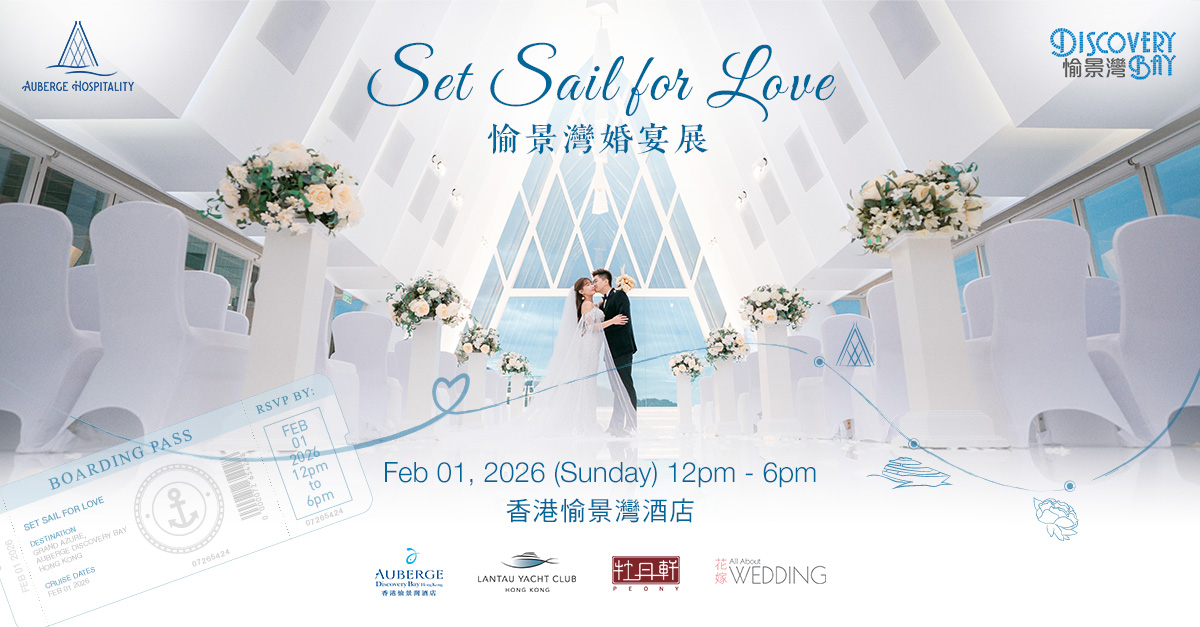 Whether your envisioned wedding is a romantic seaside banquet or an elegant floral cocktail reception, you are cordially invited to register for the “SET SAIL FOR LOVE - Discovery Bay Wedding Showcase” to be held on 1 February and discover a resort‑style wedding extravaganza.