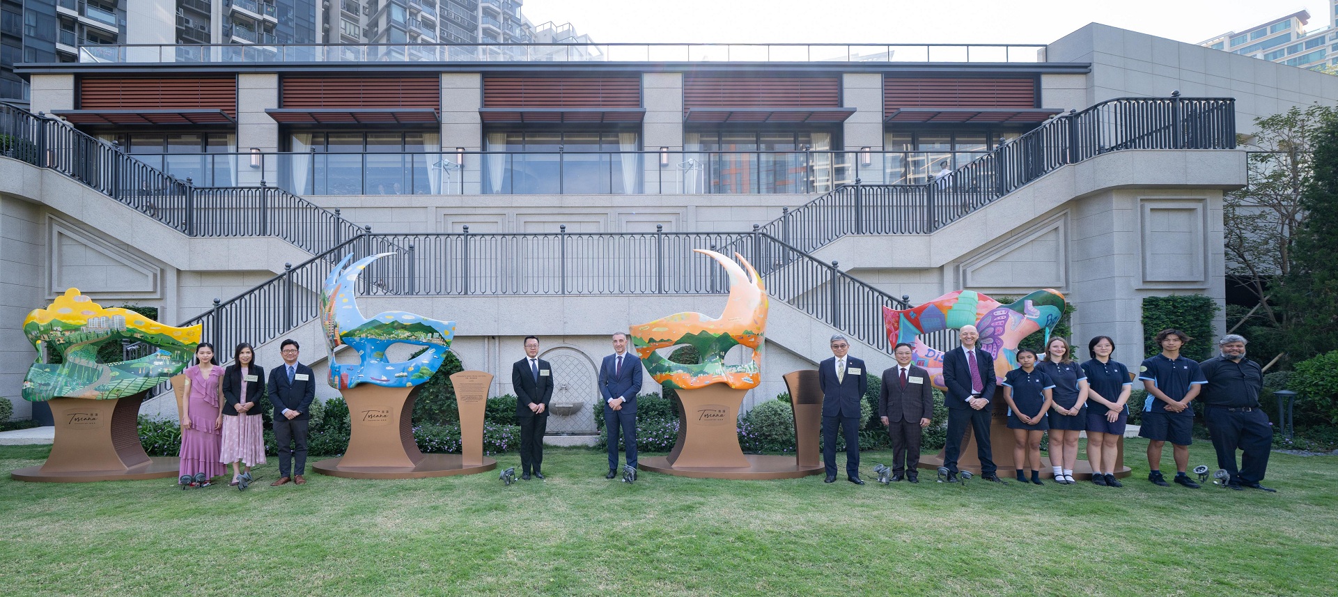 香港兴业有限公司(「香港兴业」)匠心规划逾 40 年的愉景湾,为本港著名的海滨*度假式私人住宅区。今日,香港兴业国际集团有限公司(「香港兴业国际」)执行董事兼首席项目官李宇光先生、业务拓展及市务总经理王泽明先生和销售及市务助理总经理陈秀珍女士,以及中信泰富有限公司香港地产部董事李伟明先生与中信泰富物业代理有限公司董事李肇文先生,与意大利驻香港总领事费文浩(Carmelo Ficarra)先生一起主持愉景湾全新意式大型海景*豪宅区「Toscana 意涛」的命名仪式及展销厅开幕盛典,并为「愉景湾艺术展览︰从未如此近」主持揭幕,于愉景湾区内推动意大利生活、文化及艺术气息。