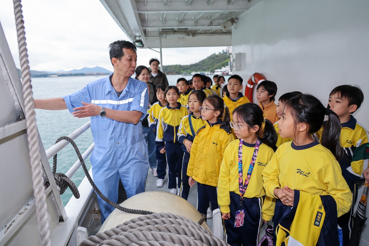 活动由生动有趣的互动环节「愉景湾知多少?」揭开序幕。从历史冷知识到社区小细节,学生都踊跃抢答,赢取奖品之余,也加深对愉景湾的认识,从中培养归属感和责任感。他们又在操场探索了电动车辆,了解其环保特性,以及在推动愉景湾可持续发展方面担当的角色。学生走进愉景湾隧道控制室,进一步认识其功能、运作以及区内陆路交通的发展。旅程尾声,学生来到愉景湾水塘,静静听着水塘的过去与现在,明白这项宝贵社区资源的演变和价值。